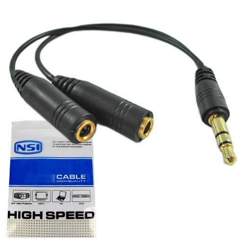 | This NSI 3.5mm stereo splitter cable splits the audio signal from your iPod, MP3 Player, Portable CD players, Computer or any audio device with the 3.5mm stereo jack to two headphones or multiple speakers. Simply connect one end of cable into the mini-stereo jacks of your portable audio component, and the other to your existing two headphones, you and your friends can enjoy the music at the same time! Connector 1: one 3.5mm Stereo Male. Connector 2: Two 3.5mm Stereo Female |